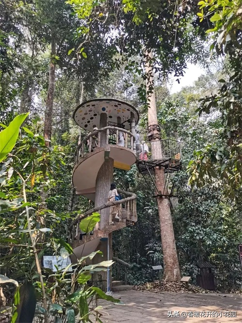 踏上旋转楼梯,一点点向上,去走树冠走廊。