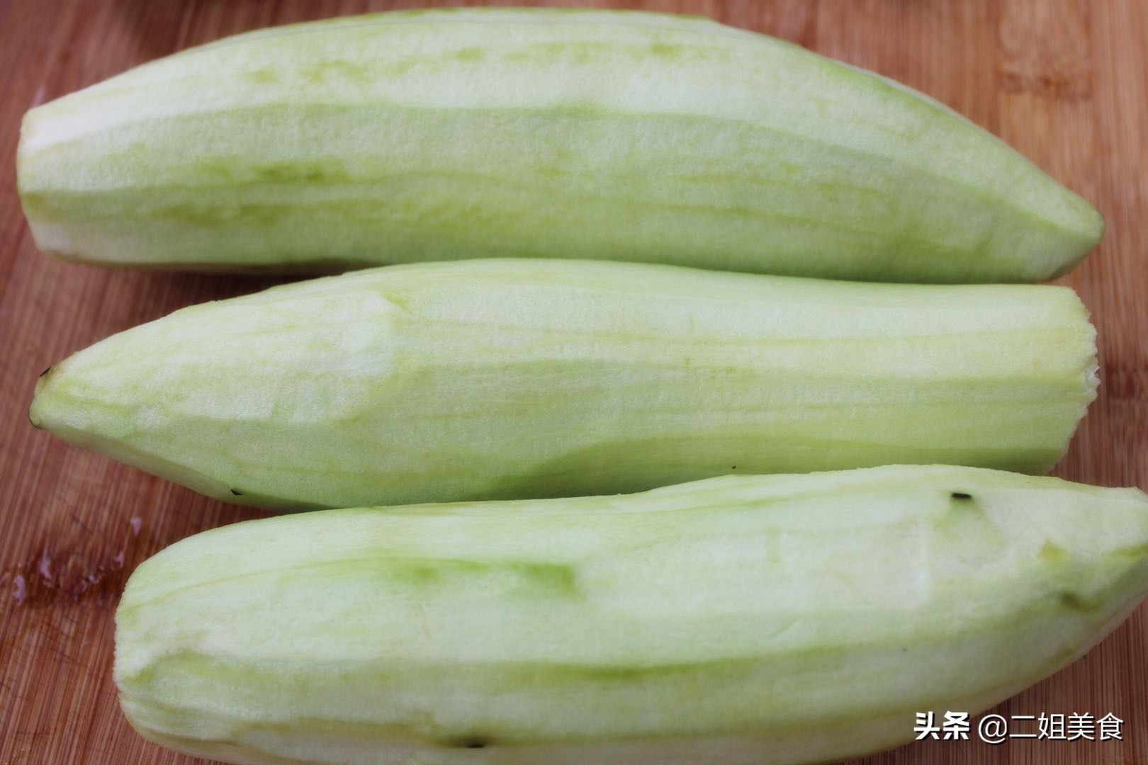 3、将茄子清洗干净之后要将茄子外皮去掉,这样我们吃茄子馅饺子的时候更软嫩一些。