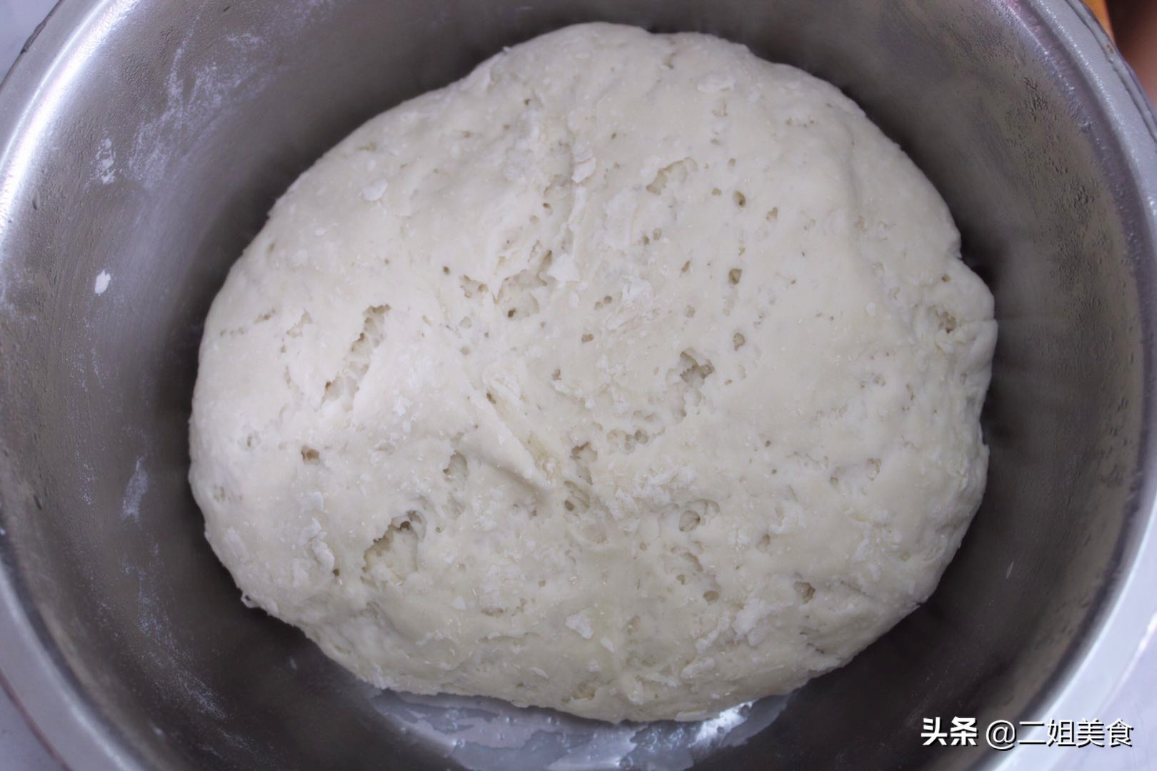 2、随后我们用一点温水少量多次的加进去,这样和成光滑的面团,随后发酵上一个小时。
