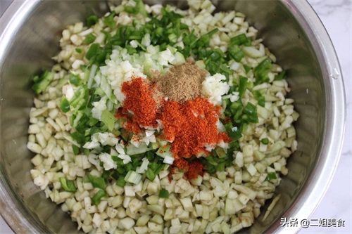 二姐做这道茄子包子,加入的茄子在放上调味料之后,味道就会软嫩鲜香,而且虽然不放肉但是做出来的味道比肉馅还要解馋一些。