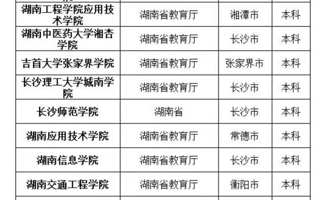 湖南工程学院、长沙学院、湖南文理学院、湖南城市学院和湖南财政经济学院。