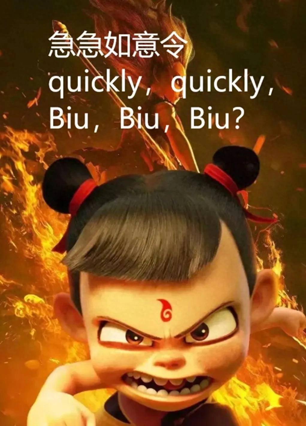 现代玩梗:年轻人的“万能咒语”。 如今的“急急如律令”早跳出宗教框架,成了网友口中的“魔法快捷键”。赶论文时默念它,仿佛能加速码字;抢票时喊一嗓子,堪比电子木鱼攒功德。而《哪吒2》翻译成“quickly quickly biu biu biu”虽被吐槽,却意外契合年轻人“一本正经搞笑”的脑洞。