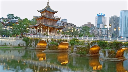 甲秀楼,贵阳城市地标,位于南明河上的一座古楼阁,历经400年仍矗立不倒,是贵阳的历史见证。