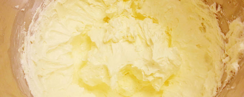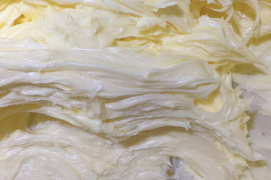 若是想要制作口感略有韧性的烘焙食物,则要将黄油打发至蓬松的状态,也就是黄油油脂为乳黄色,组织蓬松能带出毛绒状。若是制作酥松性小西点,则要充分打发黄油,黄油的油脂应该为乳黄微白色,且比较蓬松能带出毛尖。