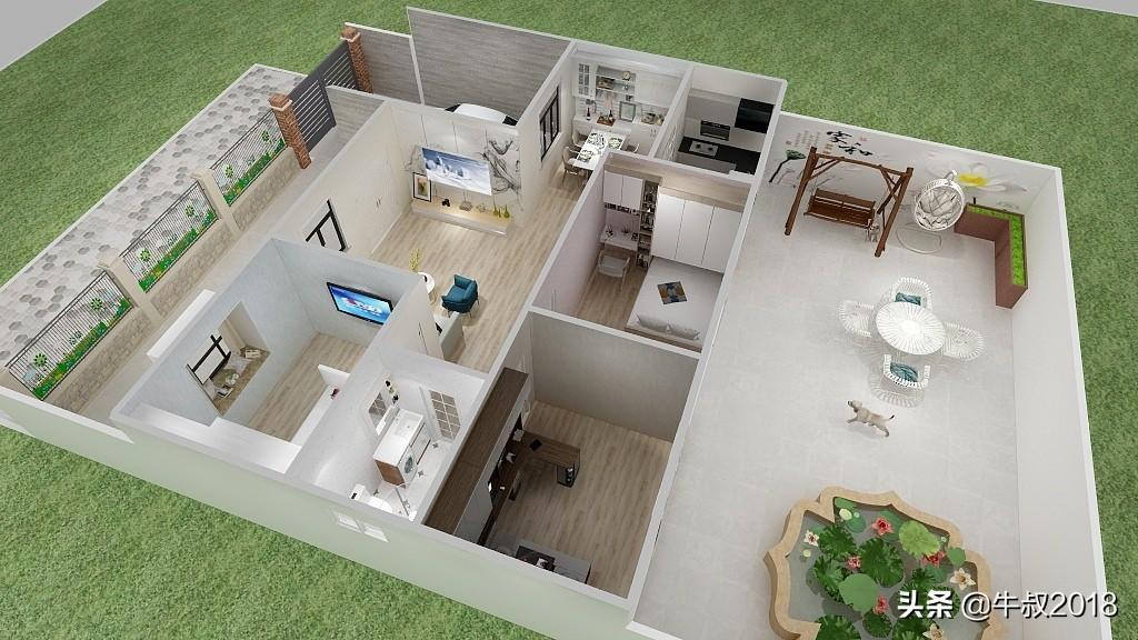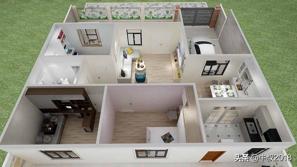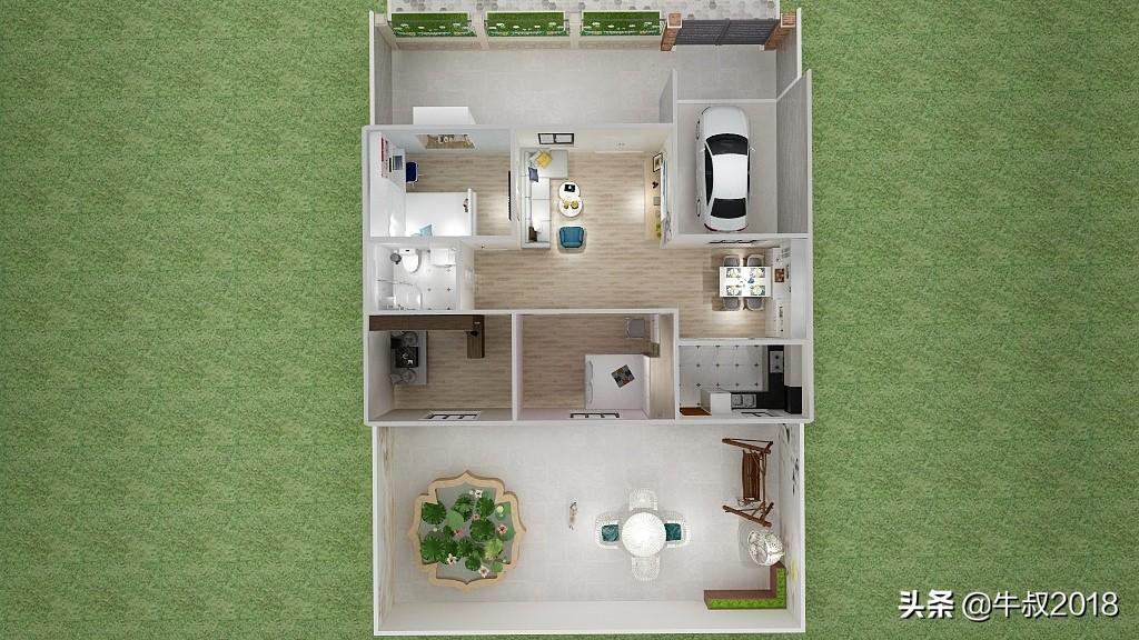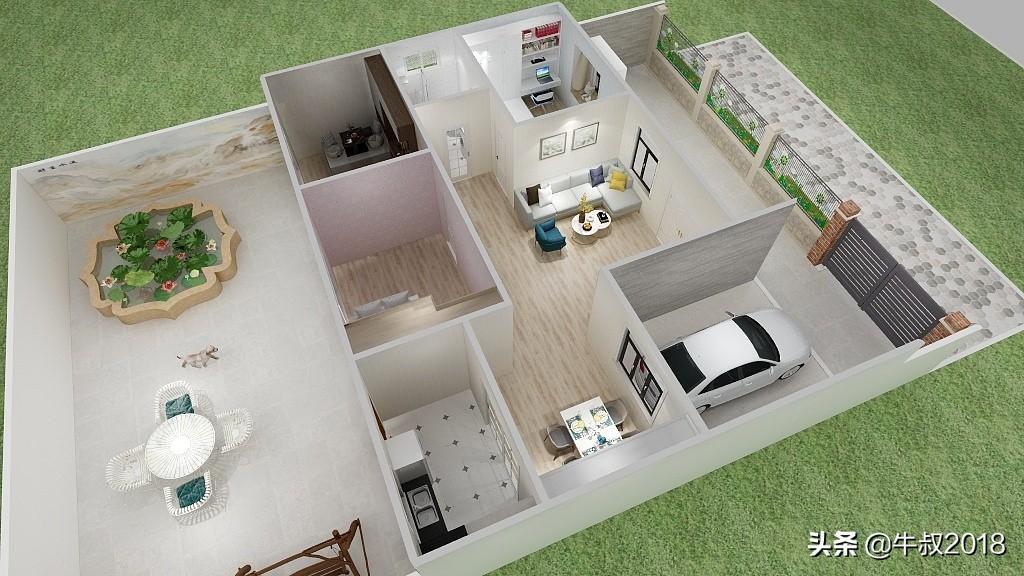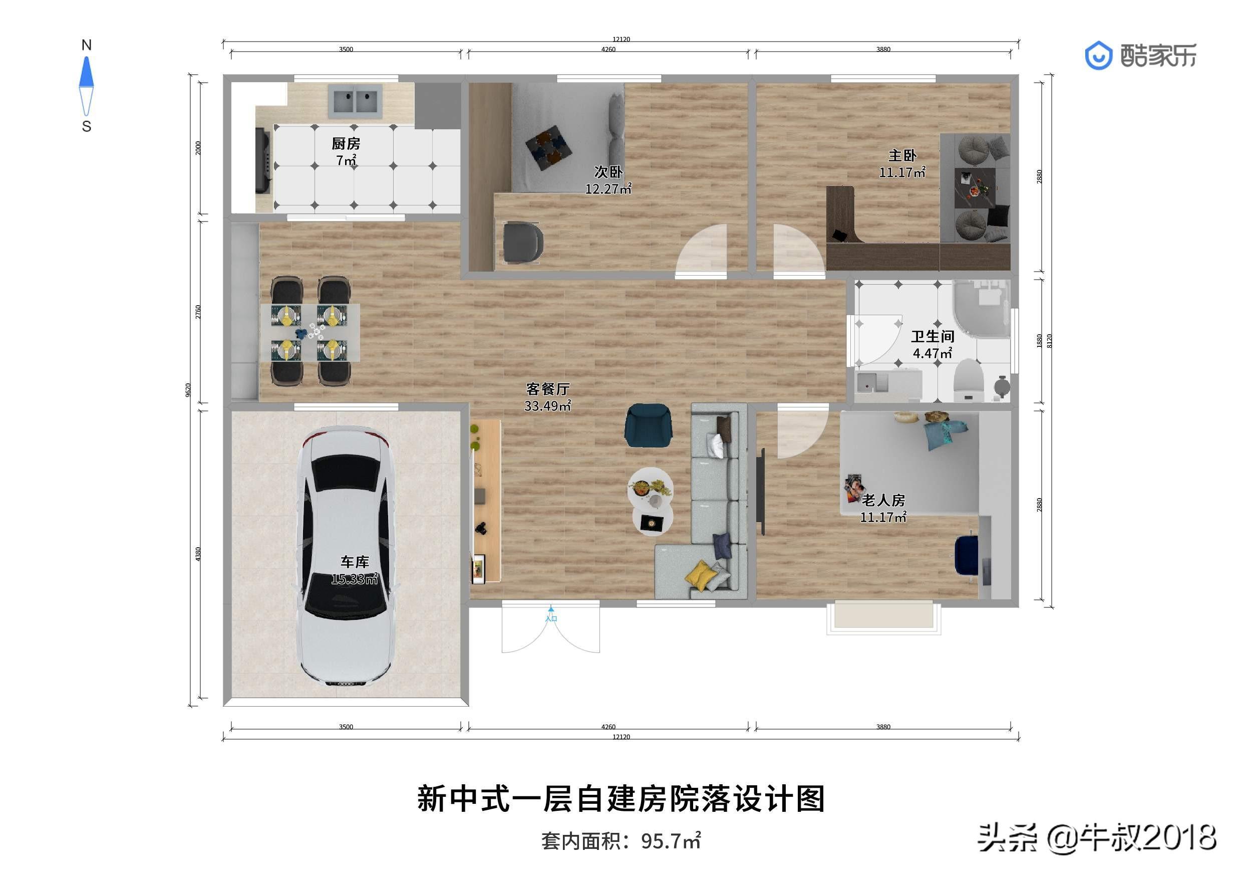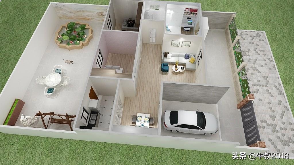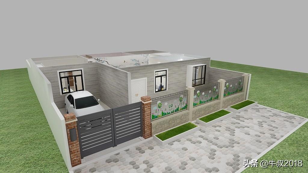 大家好,我是牛叔,我又来了,今天做了一个农家院的设计图,很适合北方乡下农村建养老房,一层的设计,三室两厅一厨一卫,有车库带前后院子,面积不大,布局很紧凑,节约土地,又节省成本,适合资金紧张,又想给父母建新房的朋友。房屋占地面积仅80㎡,加上车库95平方米,不需要车库的朋友可以直接把车库改建成卧室,马上变成四居室,在农村肯定也是够老人孩子住的。