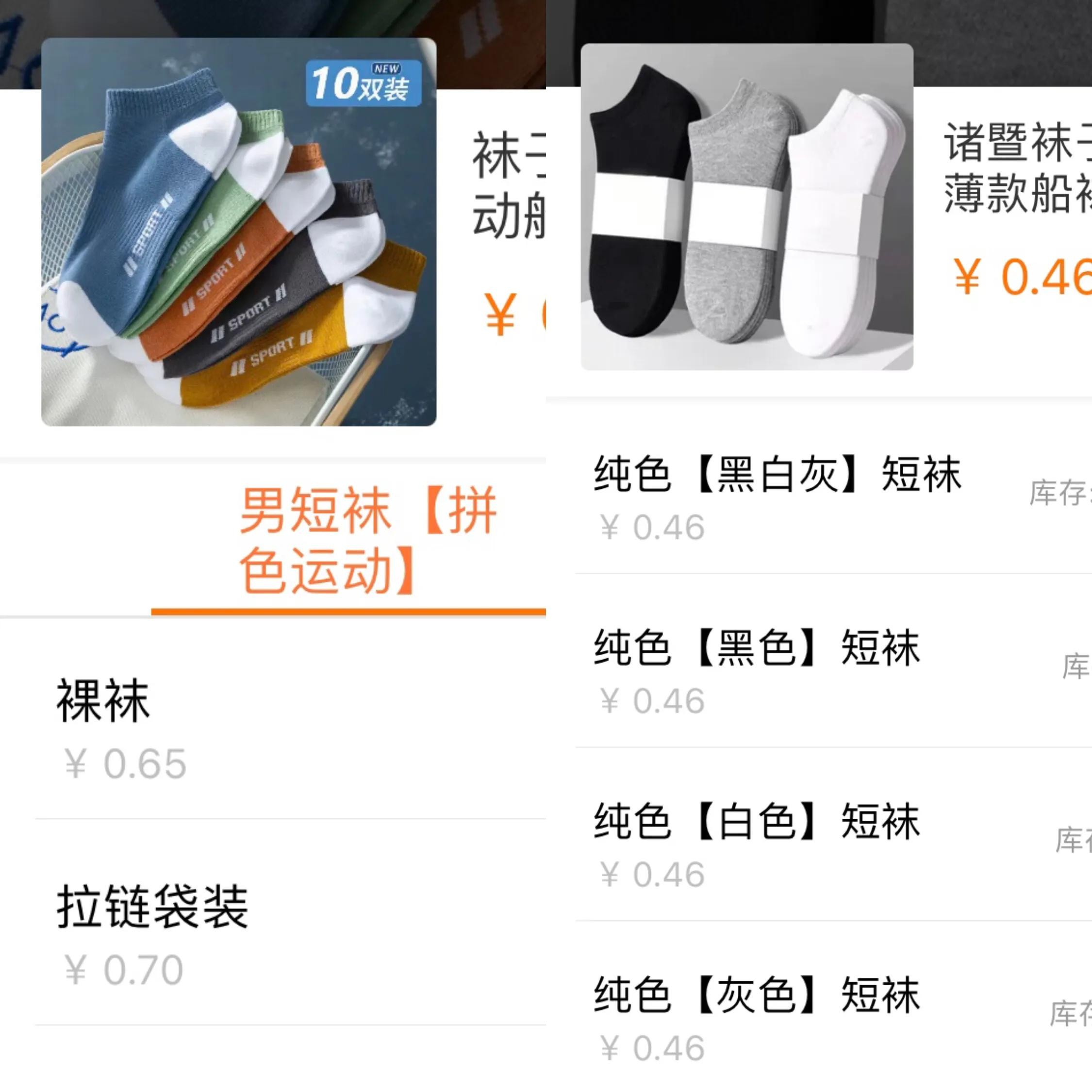 我们可以用500进1000双袜子,基本上袜子在0.3-1左右,如果量大有能力还能够拿到更低。