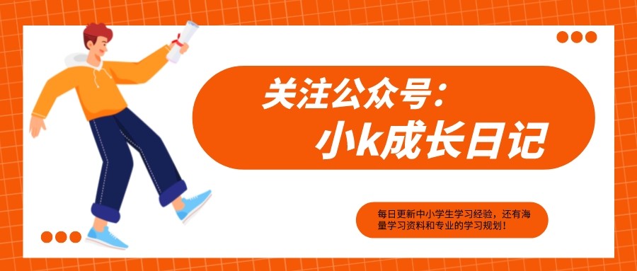 我比较建议大家关注这个公众号:【小k成长日记】这里有海量的学习方法和辅导方法,真心建议各位同学及家长朋友去看一下!