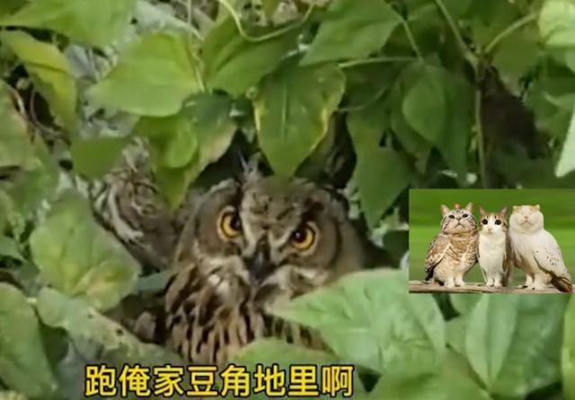 于是这位大哥就给猫头鹰又喂了一些吃的,看着一段时间后猫头鹰的状态恢复得不错,于是就准备把这只猫头鹰给放生了。谁知道这段时间猫头鹰在家里面有吃有喝:被伺候的太好了,一时间居然不想离开了,就算大哥给他放生也不走,重新回到了这位大哥家的豆角地里。