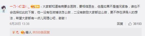 这条微博发布后引发争议,有网友指出自行在家治疗的行为“误导”群众,批评他“无知”。