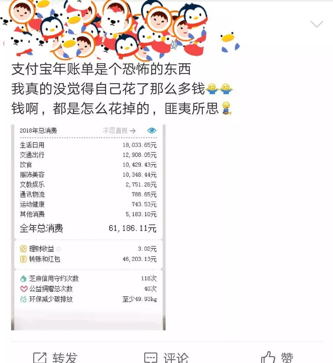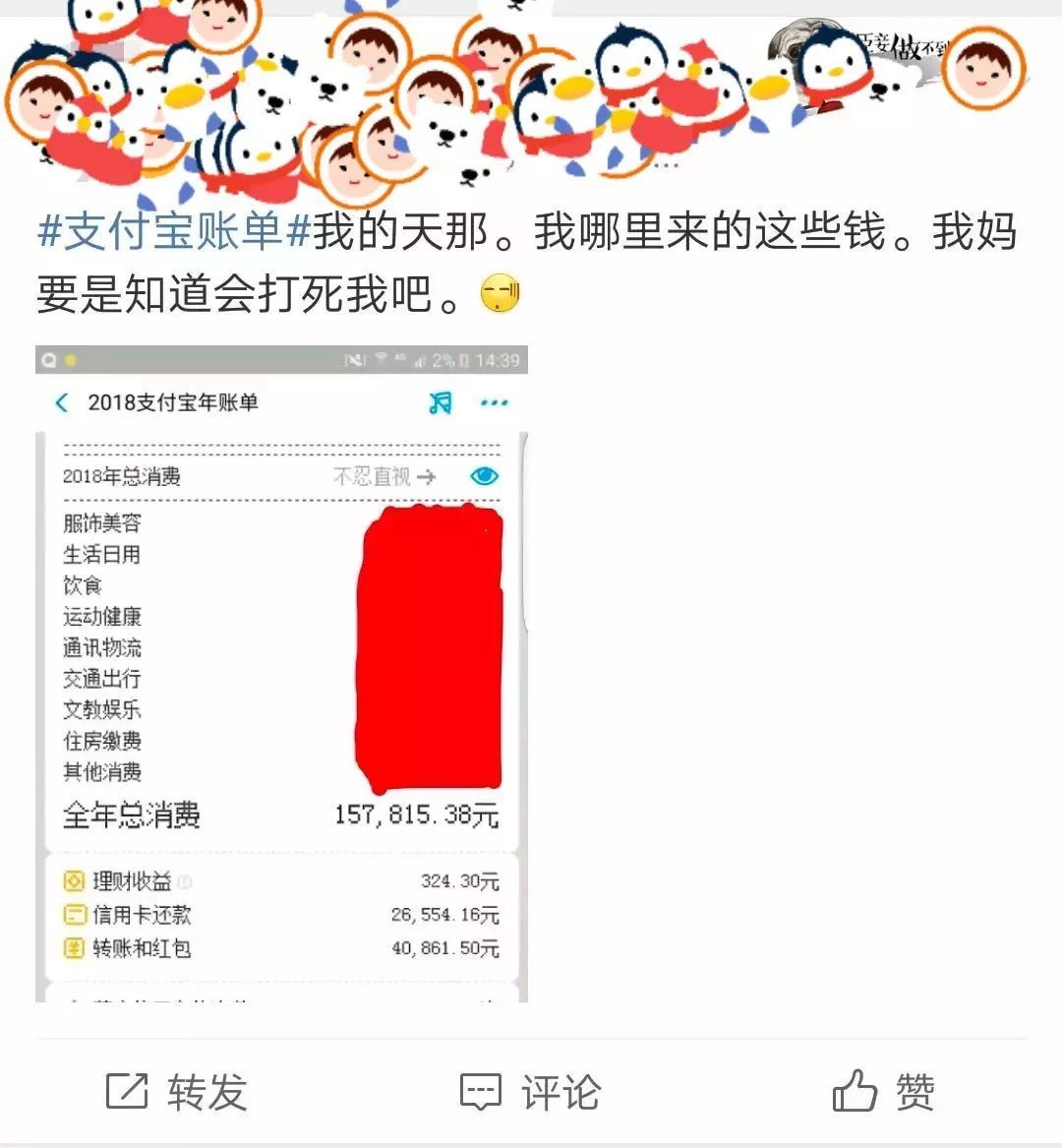 看完自己的账单,不少网友被吓坏了:我是谁?我在哪儿?我哪来的钱?