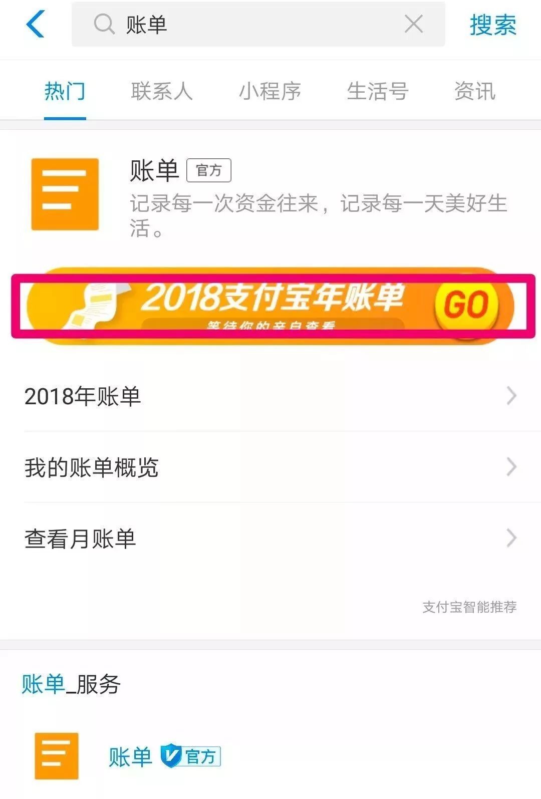 打开支付宝,搜索“2018账单”