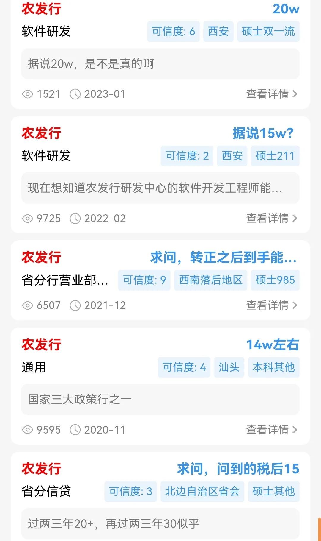 中国农业发展银行,2020年员工平均工资25.88万元。可见部分地区普通员工20w-30w,可信度也是比较高的。中西部等地区也能到15w,比当地平均水平高出一截。