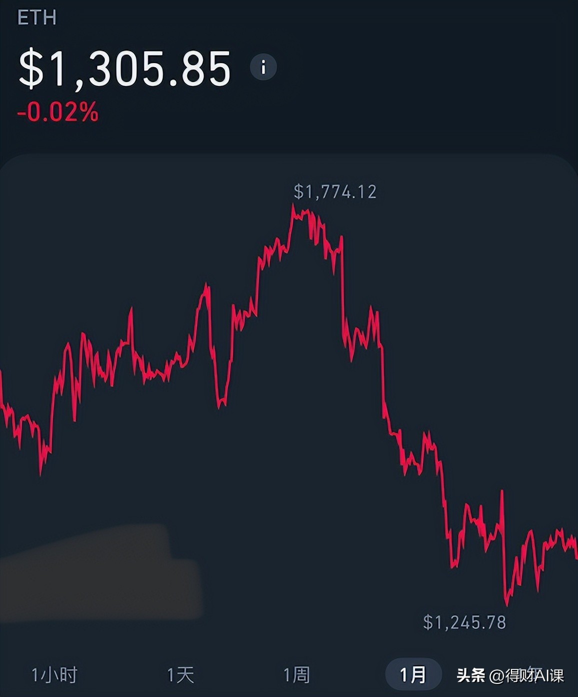 截止发稿,以太坊价格跌至1300美金一枚左右,本周最低点曾跌至1245美金一枚。