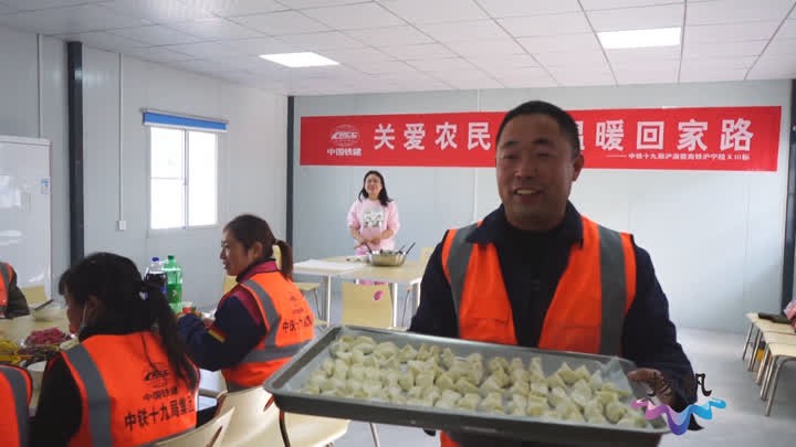 工程项目部为即将返乡的建设者们送上节日慰问品,并按照“上车饺子,下车面”的习俗,组织包饺子、吃团圆饭,热热闹闹迎新春。对于不少建设者来说,常年奔波在外是常态,春节回乡之路倍感期待。