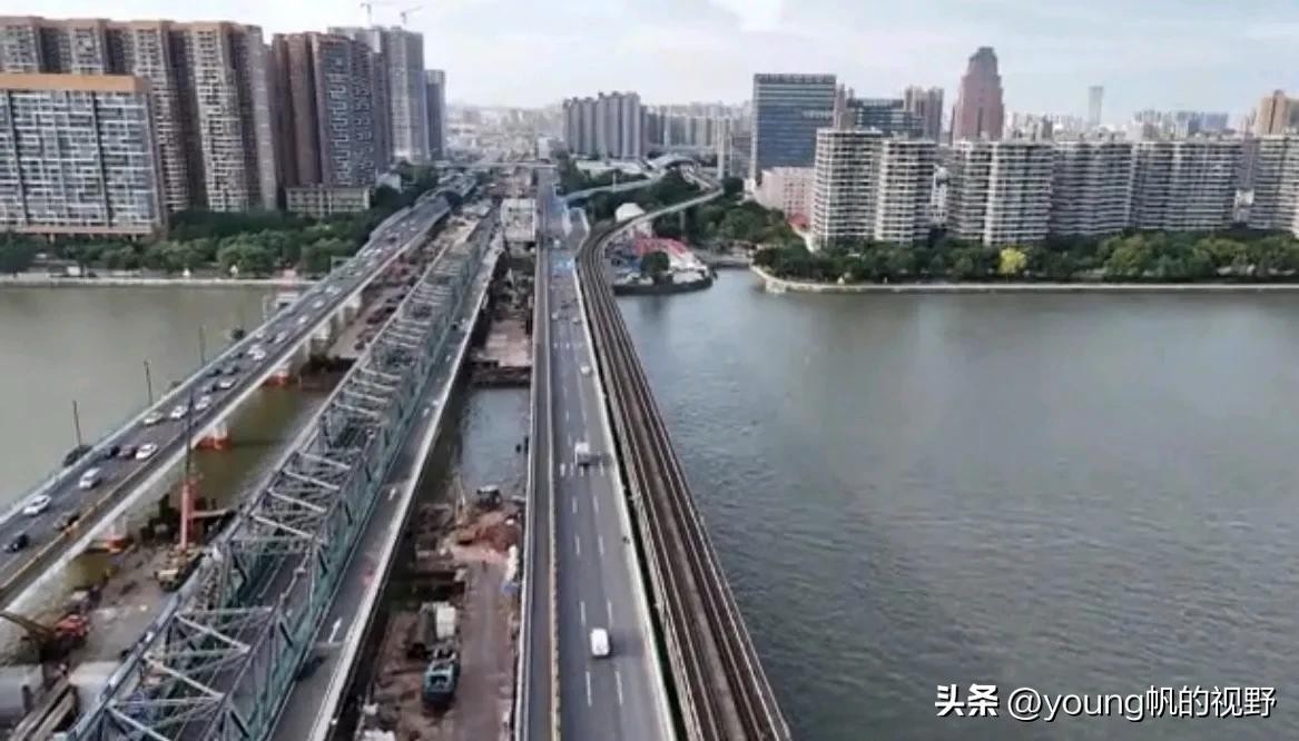 在珠江右航道的岸边,已经搭设起了新的高铁钢结构桥梁,从宽度看,目测至少汽车道以上,难道未来此处铺轨不止双轨吗?
