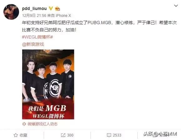 PDD为MGB战队发了一条罕见的微博,表示自己将会潜心修炼,严于律己,将希望寄托到了绝地求生战队MGB身上。