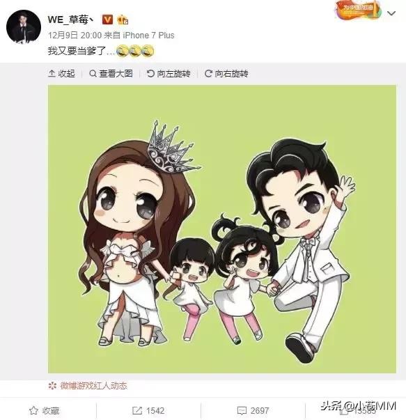 本来草莓已经有两位千金了,但昨晚他又公布要当爸爸!