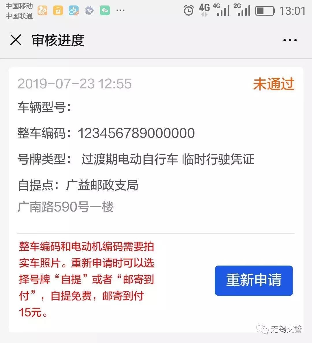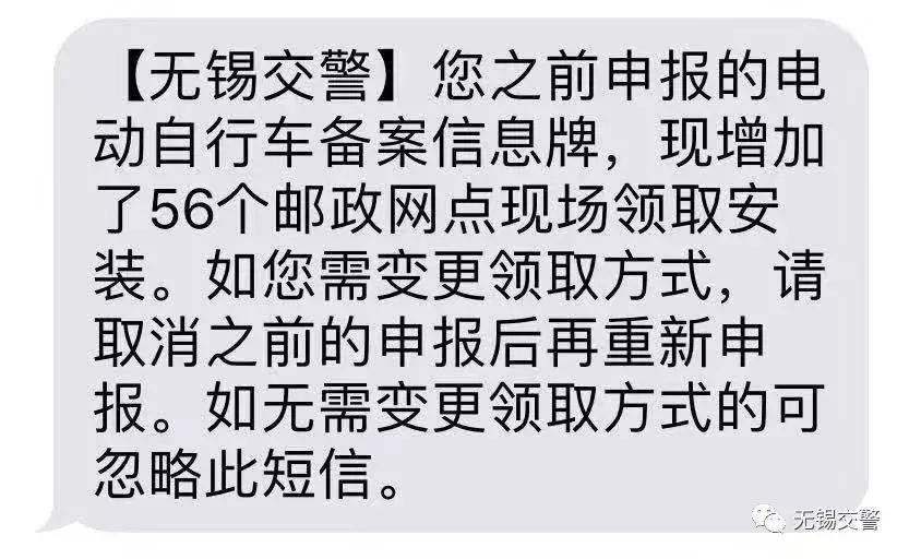 目前,无锡交警在全市56个邮政支局、邮政所正在陆续发放非国标电动自行车备案登记临时信息牌。