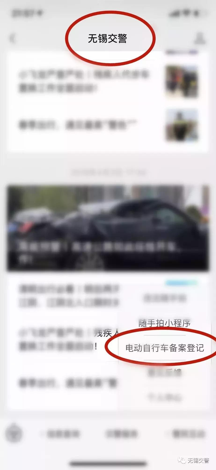 无锡电动自行车备案登记按照“线上申报、线下领取”方式办理,车辆所有人可通过“无锡交警”或“平安无锡”微信公众号进行备案信息预录入。