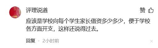 应该是学校向每个学生家长借资多少多少,便于学校各方面开支,这样还说得过去。