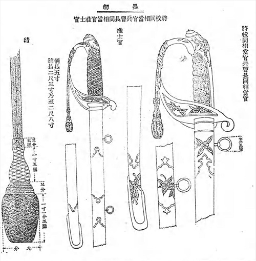长剑就是海军佩剑。明治29年(1896年)规定的将官和军官长剑样式相同,但剑柄和剑鞘上的花纹不同。大正3年(1914年)规定统一了将官和军官的长剑花纹。