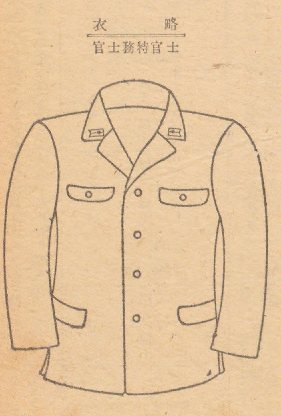 第二种军装就是夏季勤务服,起源于明治20年(1887年)制定的夏服,当时夏服和常服(第一种军装)样式一样,材质为白色亚麻布料,袖口也有袖章。
