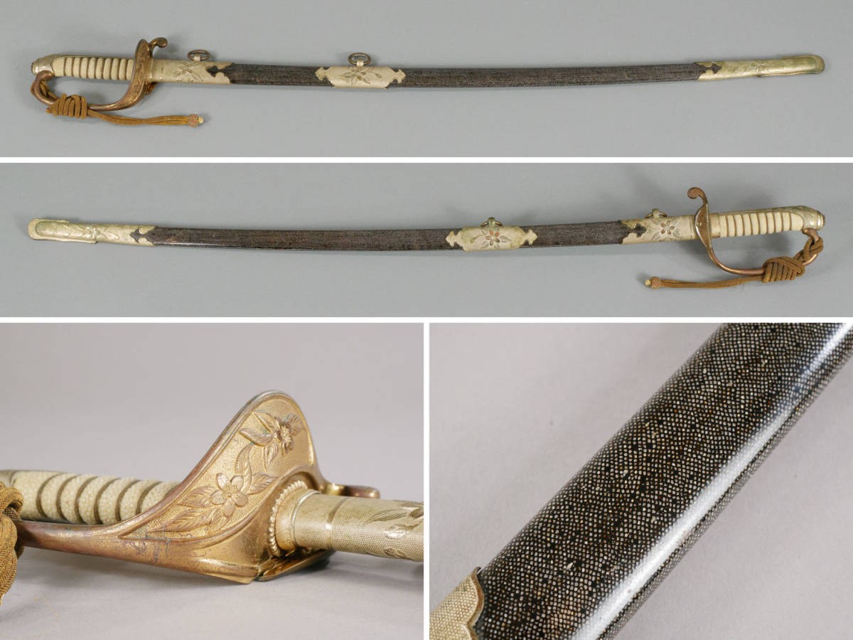 剑柄长4寸3分(约13.092厘米)到5寸(约15.15厘米),剑鞘长2尺3寸(约69.69厘米)到2尺8寸(约84.84厘米)。剑柄表面为白色鲨鱼皮,并缠绕金线。护手为西方样式,并雕刻樱花叶图案。剑鞘木制包括黑色鲨鱼皮或黑色皮革,并带有三个金色金属配件,后两个上有圆形吊环,金色配件上都有樱花叶图案。刀柄护手上缠绕一根剑绪。