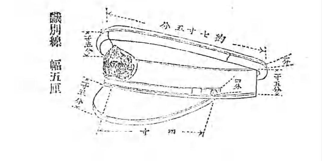 帽墙上方是5厘(约0.151厘米)宽识别线,代表兵科以外的非作战部门:机关(轮机)为紫色,军医为红色,主计(行政后勤)为白色,造船(船舶制造)为茶褐色,造兵(武器生产)为虾茶色,水路官(水路测量和海图制作)为蓝色,船匠(船只修理)为绿色。1942年(昭和17年)4月1日取消了识别线。