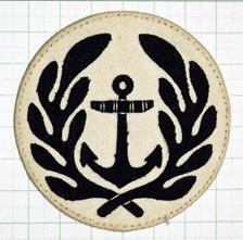官职识别章就是军士和水兵的军衔臂章。1942年之前军衔臂章为圆形臂章,里面图案和岗位有关,比如兵科为船锚,机关科为扳手,军乐是竖琴,主计科是笔,技术科船匠是斧头等。礼装上为黑色底金色,冬装为黑色底红色,夏装为白色底黑色。