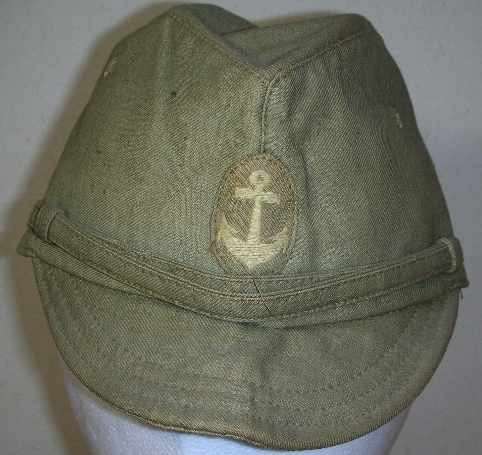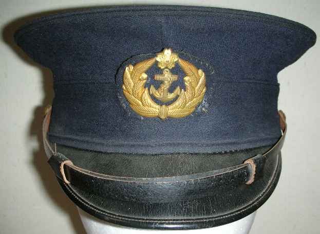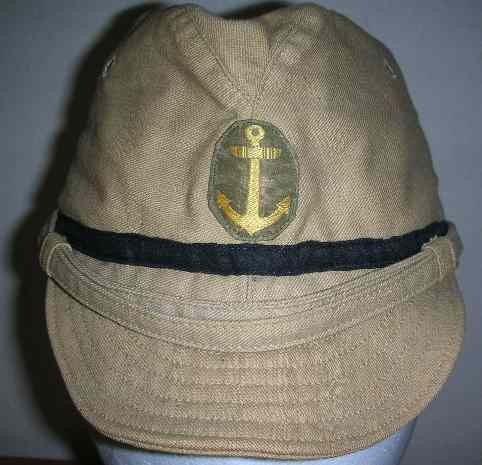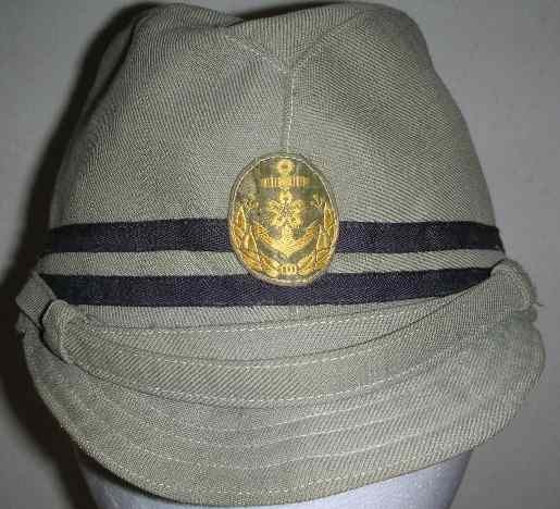 昭和12年(1937年)勅令第614号规定了略帽,第一种略帽为藏青色,军官有两条白色条纹,军士有一条白色条纹。帽章为褐青色底布由金线刺绣而成,军官(包括准尉)和军士帽章为船锚和樱花;水兵帽章为船锚。