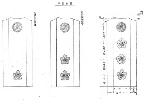 明治33年(1900年)取消了袖章,在夏装上使用肩章识别军衔,不过在过渡期在旧夏装佩戴肩章,所以有一段时期内袖章和肩章同时出现在夏装。