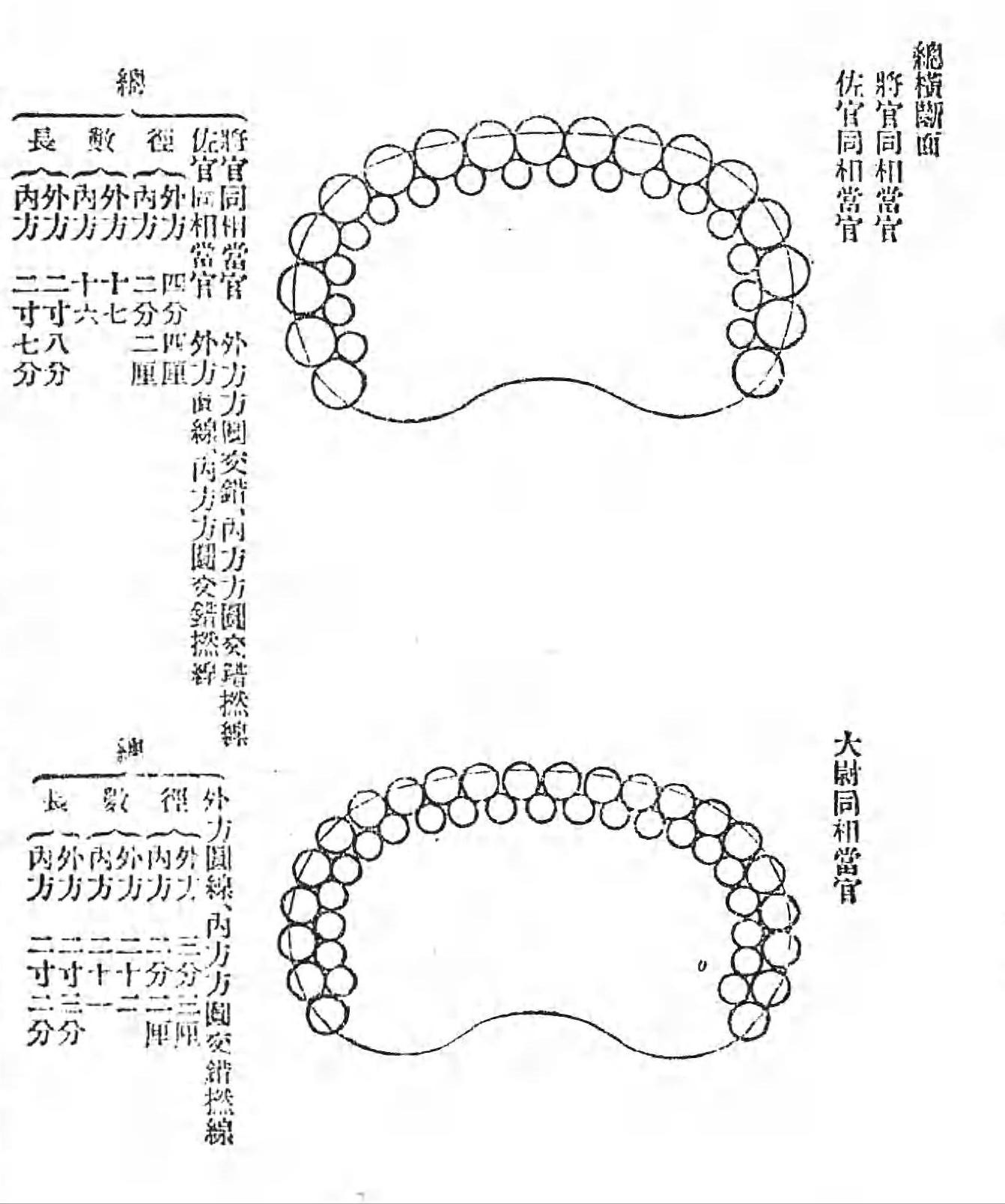 大将为2粗3中,中将为2粗2中,少将为2粗1中;大佐为4中,中佐为3中,少佐为2中1细;大尉为2中,中尉为1中1细,少尉为1中。