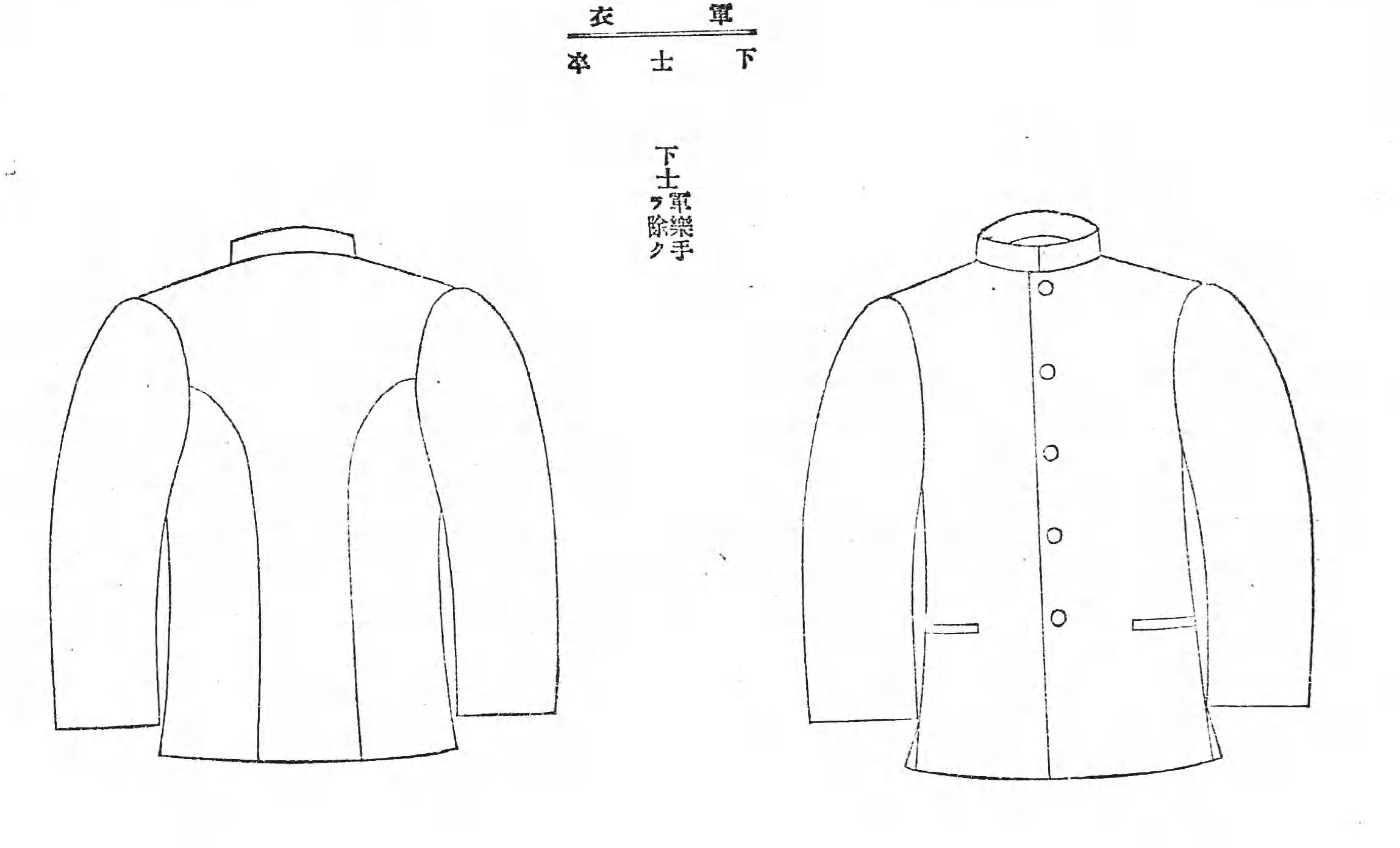 军衣为藏青色,是日本海军使用时间最长的冬季勤务服。明治20年(1887年)勅令第43号规定军衣是翻领,明治23年(1890年)勅令第70号将军衣改为了立领。