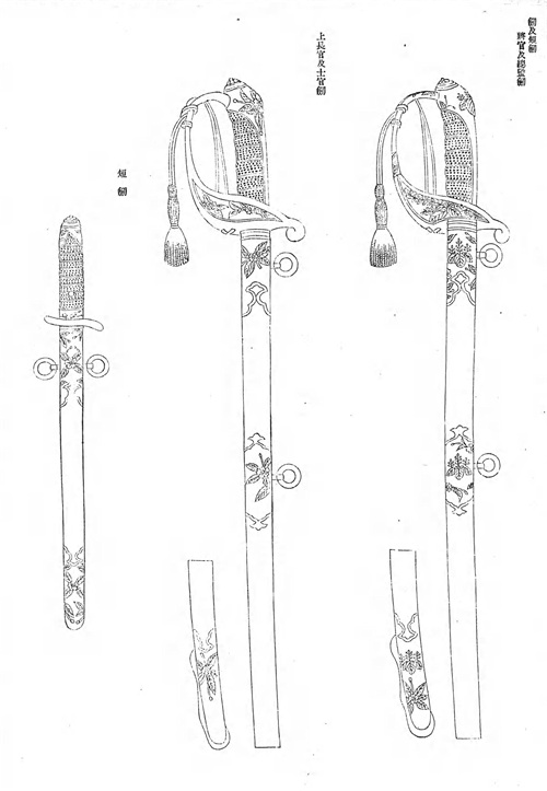 明治29年(1896年)长剑:中间为军官,右边为将官