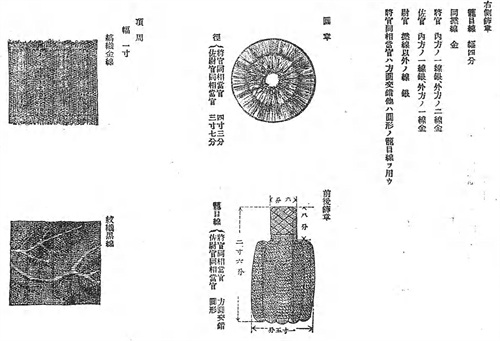 军衣的袖章样式和礼服一样,但不是金色,而是缟织黒毛线(垂直条纹纹理)。
