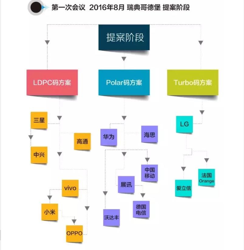 2016年8月,在瑞典举办的3GPP会议是5G编码技术方案的提案会议。会议期间,共有三个方案被提出。方案一是LDPC,高通、三星、中兴、小米等都支持这一方案;方案二是Polar,支持者有华为、海思、中国联通、展讯、德国电信、沃达丰等;方案三是Turbo方案。