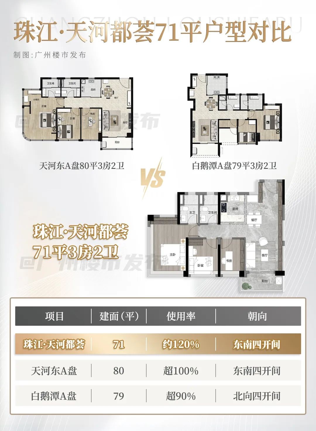 对比天河东和白鹅潭同样总价段的产品,天河都荟优势明显。