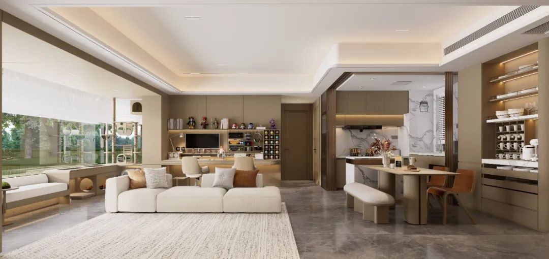 并且,同样预留了客厅打通的条件,可以形成一个超大的家庭生活方厅。