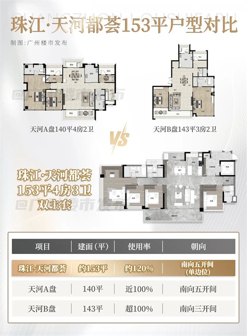 对比同价位的其他天河新盘,天河都荟不仅使用率遥遥领先,而且还是“真四房”。