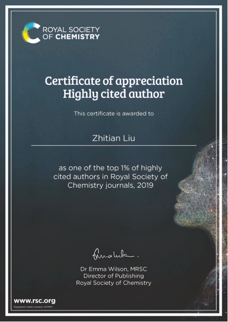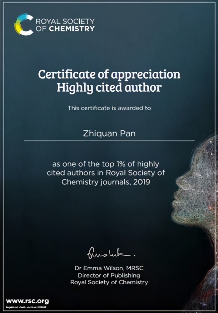 2020年底,英国皇家化学会(RSC)2019年度物理化学类期刊全球“Top 1%高被引中国作者”榜单揭晓,本次入选英国皇家学会2019年全球Top1%高被引的中国作者(无机化学类刊)共39名,来自国内30所高校。武汉工程大学化学与环境工程学院潘志权教授、材料科学与工程学院刘治田教授分别进入榜单。