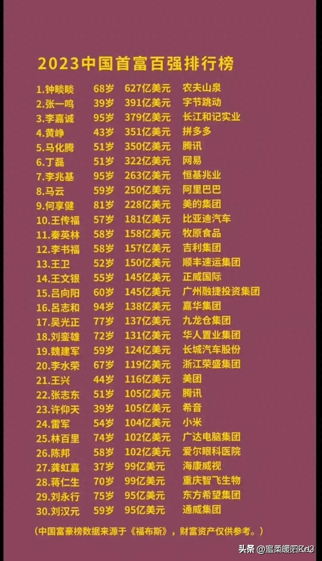 中国首富百强排行榜,对照一下,财富资产仅供参考