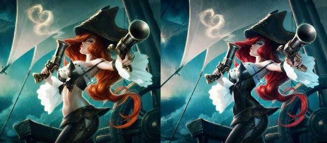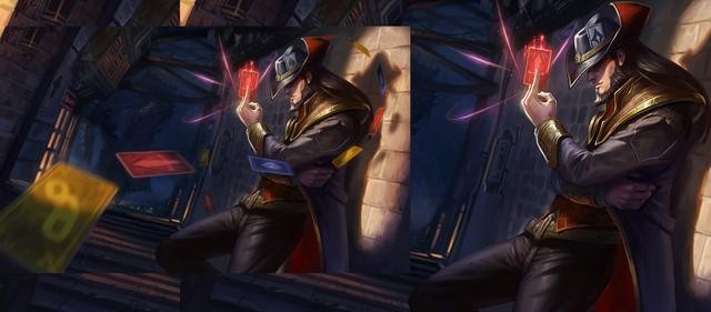 除了女英雄以外,男英雄也有不少改动的。比如劫在手游里的原画是冲击之刃的皮肤,但似乎是为了更加美观,拳头设计师们在劫的脑袋上增加了一个金闪闪的面具,看上去需要一些时间适应。而卡牌大师的原画则从四张牌减少到了一张牌,而且还是一张红牌。