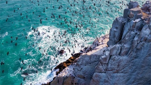 眼下,连江县苔菉镇东洛岛变成“万鸟岛”,候鸟翔集,尽显生态美景。苔菉镇地处福州最东端,东洛岛地处苔菉镇东北部海域,拥有独特的气候、环境,以及丰富的鱼类资源,成了每年冬春候鸟觅食栖息的“天堂”。(郑瑞洋/文)