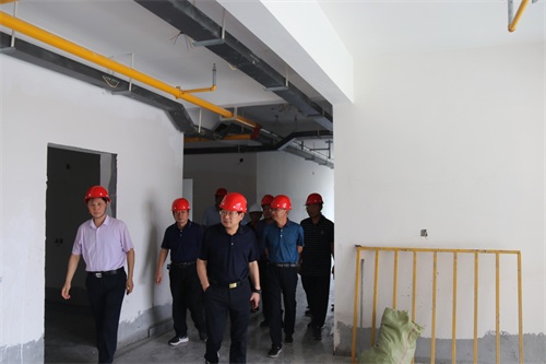 卢志文一行仔细查看了项目建设情况,进入公寓楼内部逐层检查施工质量,了解工程进度,并对全体工作人员表示慰问。