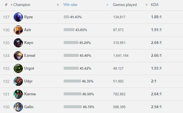 根据op.gg的统计,凯隐在韩服排位赛中的胜率仅为45.24%,排名全英雄倒数第三。C9目前在北美LCS联赛中的战绩为7胜6负,与NV并列第五。