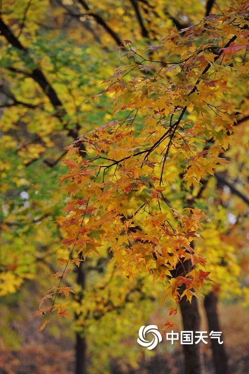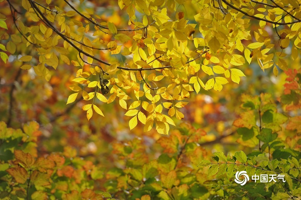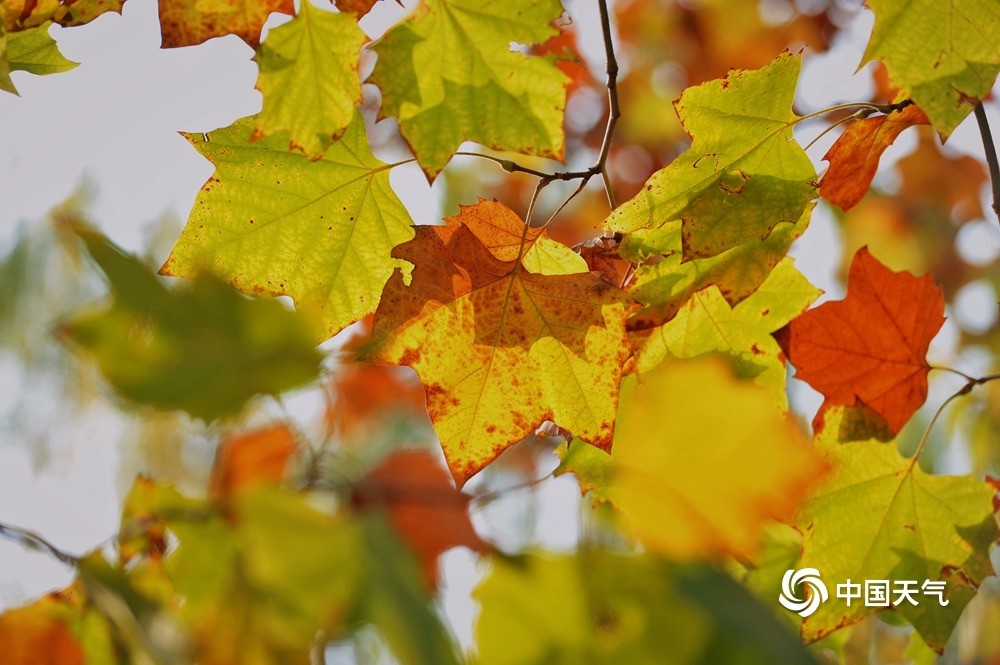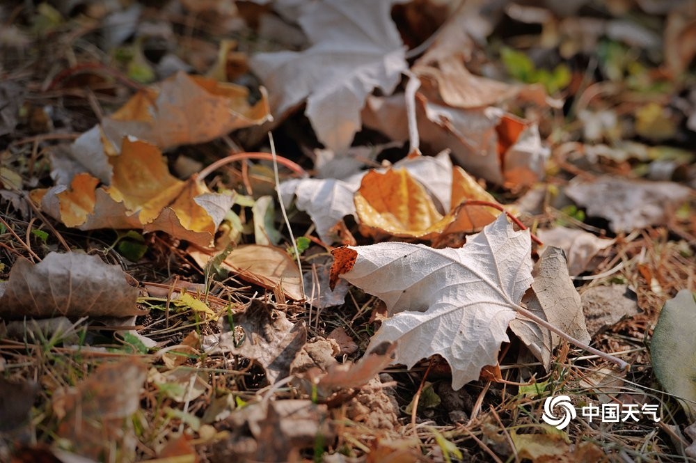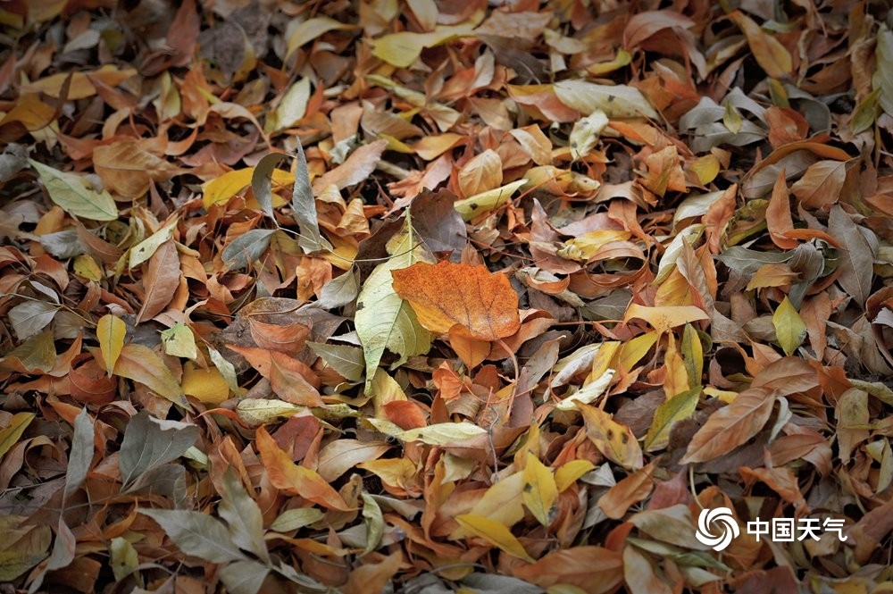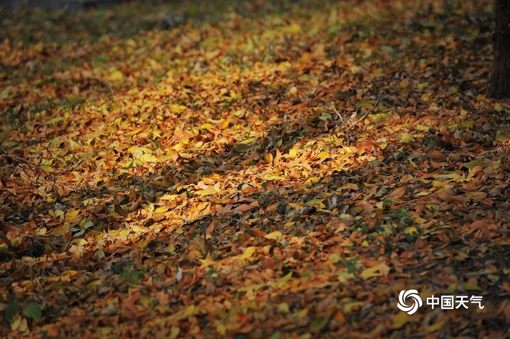 中国天气网讯 11月2日,北京正处在秋冬季节交替中,红黄相间的叶片悄然飘落,妆点了大地。置身其中,别有一番韵味。(图/中国天气网王晓)
