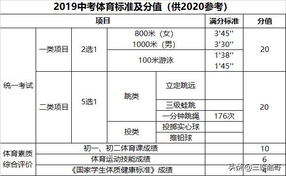 2020中考体育相关标准与2019年变化不大,此处整理2019年相关内容供参考,具体以今年中考体育问答为准。