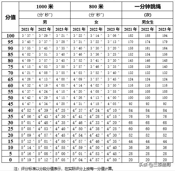 体育考试评分标准