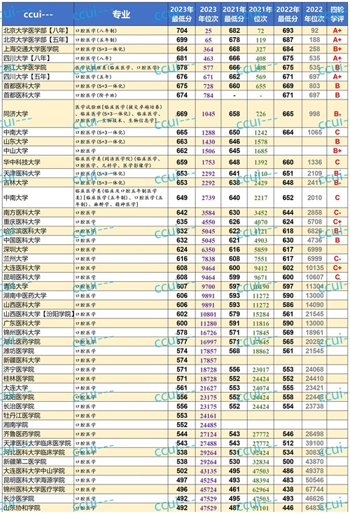 2021-2023三年口腔医学专业录取分数、位次全统计【辽宁】