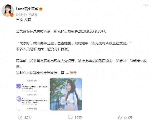 她在长文中讲述了自己两年来的遭遇和心路历程,提到与吴亦凡的绯闻风波,她表示,“两年前,我非常突兀地出现在大众视野,被推上舆论的风口浪尖,然后以一句话潦草收场。”可见秦牛正威与吴亦凡整个恋情虽然没有证据确定是有恋情,但吴亦凡粉丝对秦牛正威的羞辱却是实实在在的,让她受到了非常大的压力,但这种压力也让她迅速的成长,才取得了如今的成就。